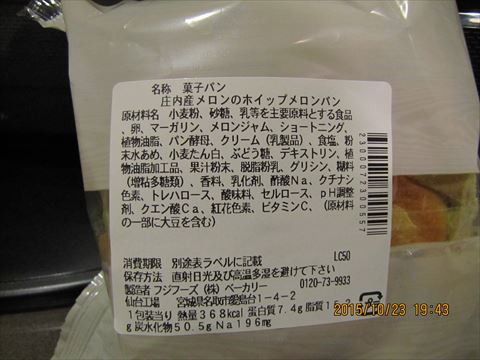 2015-10-23 今日の晩飯 メシ 三陸産鮭とほうれん草のクリームパスタ。 野菜生活100 1食分の野菜一日分のビタミンC 庄内産メロンのホイップメロンパン。明日の朝飯の予定だったが勢いで食ってhしまう。いずれにせよあるものは全部食ってしまうんだ。 ツナマヨネーズおにぎり。明日の朝飯の以下同文。