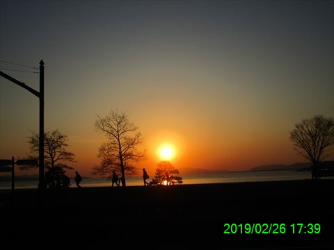 宍道湖大橋を渡って道路を隔てた白潟公園を見る。