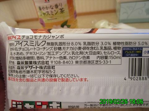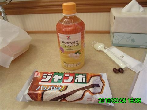 ホテルの向かいのセブンイレブンで買い物をしてホテルに戻る。アイスとジャスミン茶。固体なのに150mL。しかも脂質はグラムじゃなくてパーセントだ。脂質7.5gってことかな、水と同じ比重と仮定して。いや、牛乳は動物性だから、合わせて10.5gか。